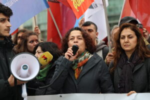 Paşê jî parlamentera DEM Partiyê ya Stenbolê Çîçek Otlû axivî û destnîşan kir ku AKP kesên li dijî xwe qebûl nake û got: “Lê em dibêjin faşîzm nikarê me têk bibe. Em ê bi gotina ‘Bijî şoreş’ di nava têkoşînê de bin.”
