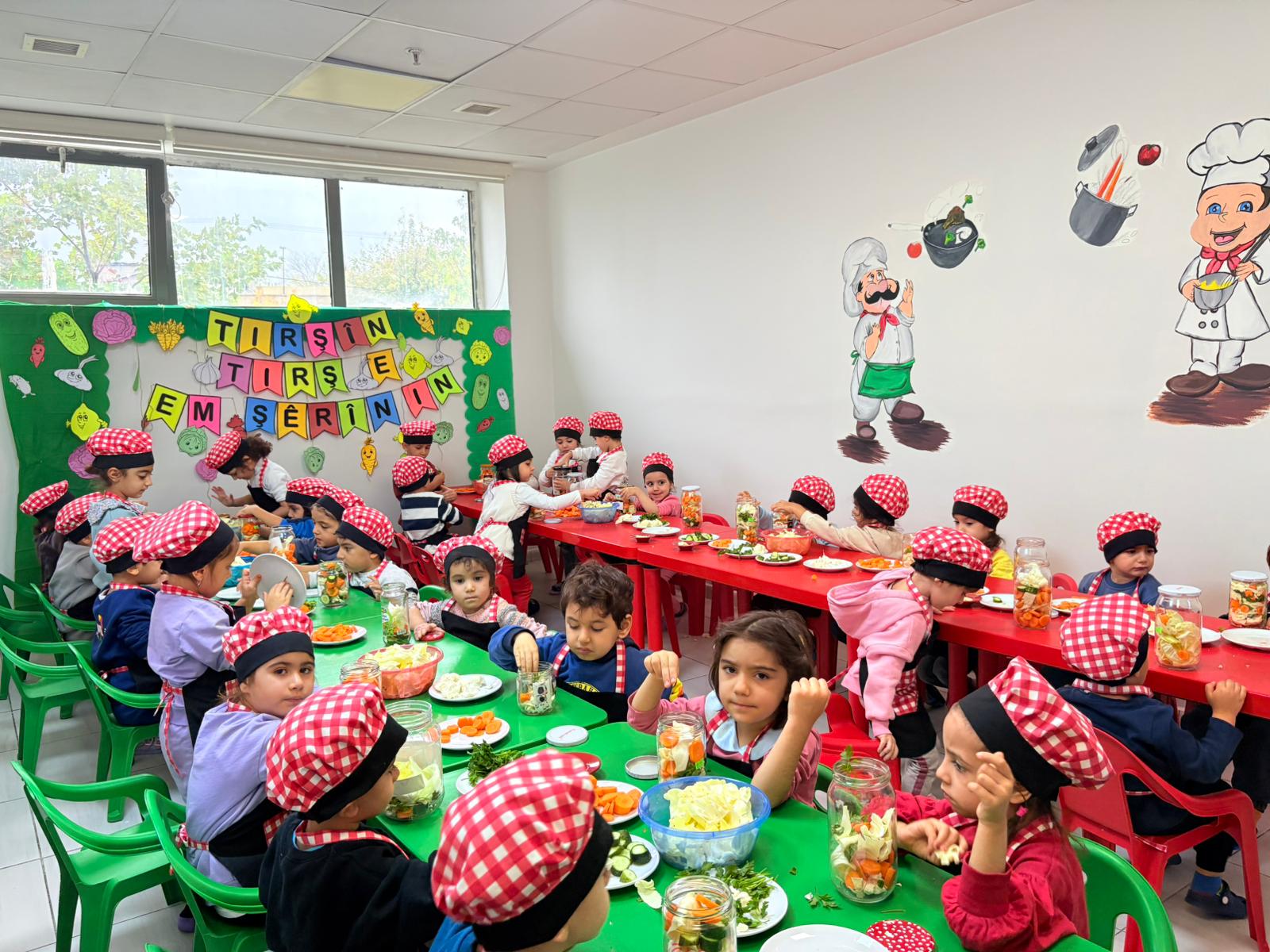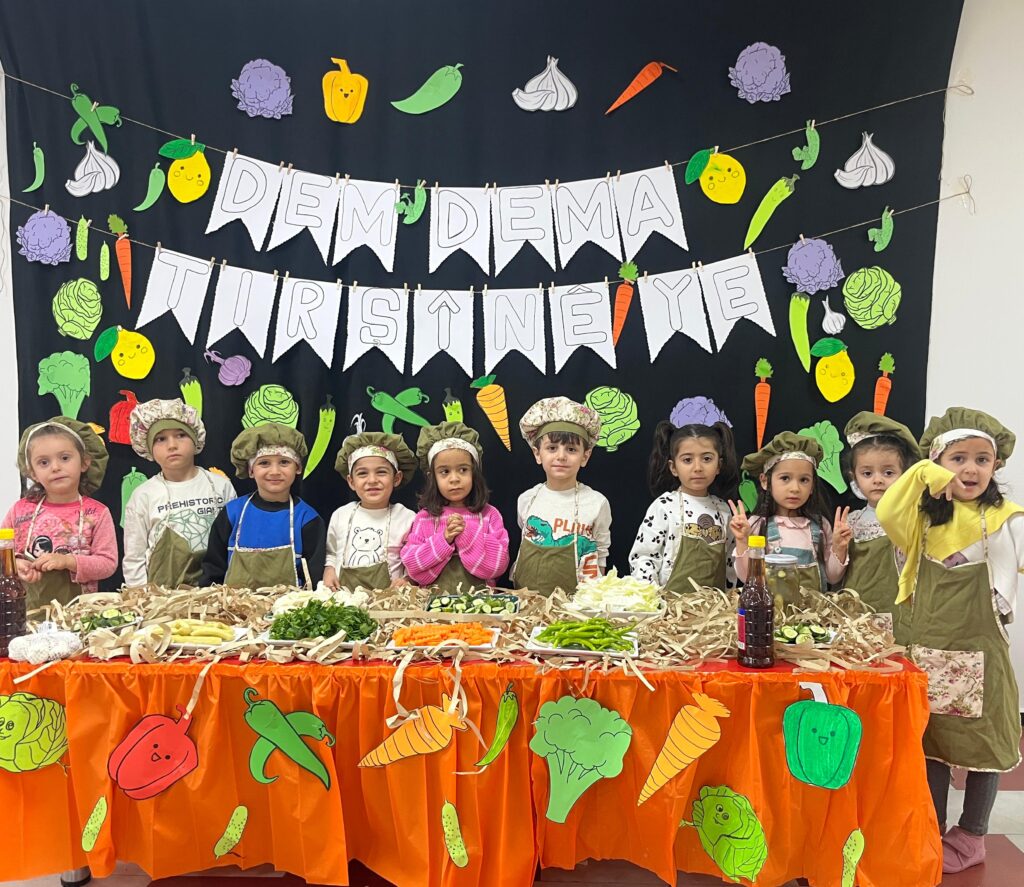 Şagirtên Zarokistana Xalxalok û Zarokistana Perperike ji bo amadekariya zivistanê bi dirûşma “Tirşîn tirş e, em şêrîn in” tirşî çêkirin.