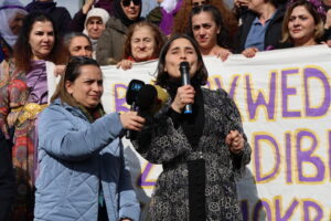 Li vir ewilî Parlamentera Amedê Ceylan Akça axivî û diyar kir ku ew 8ê Adarê jinan pîroz dikin û wiha axivî: “Em bi felsefeya Jin jiyana azadî û civaka demokratîk mezin dibin. Desthilatdar sala malbatê îlan kir û xwest jinan di nava malan de fetisîne lê jin nakevîn tenê li malan. Em li herderî ne. Em hene û em dibêjin Jin jiyan azadî.”