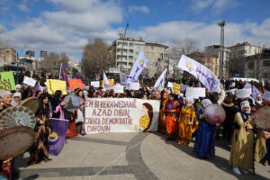 Tevgera Jinên Azad (TJA) ber bi 8ê Adarê Roja Jinan a Cîhanê ve çalakiyan li dar dixe. Li Stenbolê bi tevlibûna siyasetmedara Kurd Gultan Kişanak, parlamenterên DEM Partiyê bi dirûşmeya “Bi berxwedanê azad dibin, civaka demokratîk dihûnînin” li Qada Neyzen Tevfîka navçeya Kartalê ya Stenbolê çalakiyek li dar xist. Rêveber û nûnerên saziyên jinan, Dayikên Aştiyê, aktivîstên TJAyê û gelek jin tev li mitîngê bûn. Jin bi pankarta “Em bi berxwedanê azad dibin, civaka demokratîk dihûnînin” vekirin û dirûşmeyên “Jin jiyan azadî”, “Bijî berxwedana Rojava û Rojhilat” berz kirin. Jin wêneyên Sakîne Cansiz, Fîdan Dogan û Pakîze Nayir vekirin û govend gerandin. Jinan xwest bimeşin polîsan êrişî jinan kir. Li dijî vê jinan li ber xwe da û li qadê daxuyanî da.