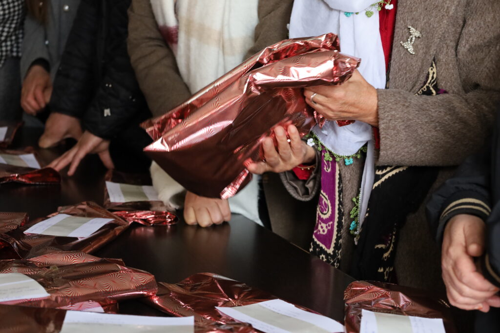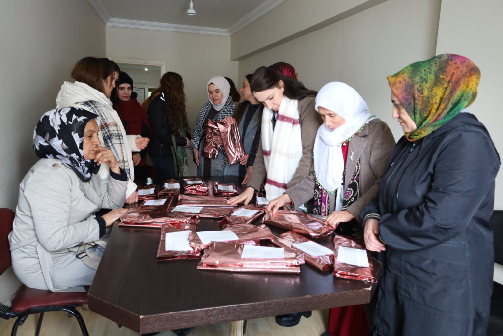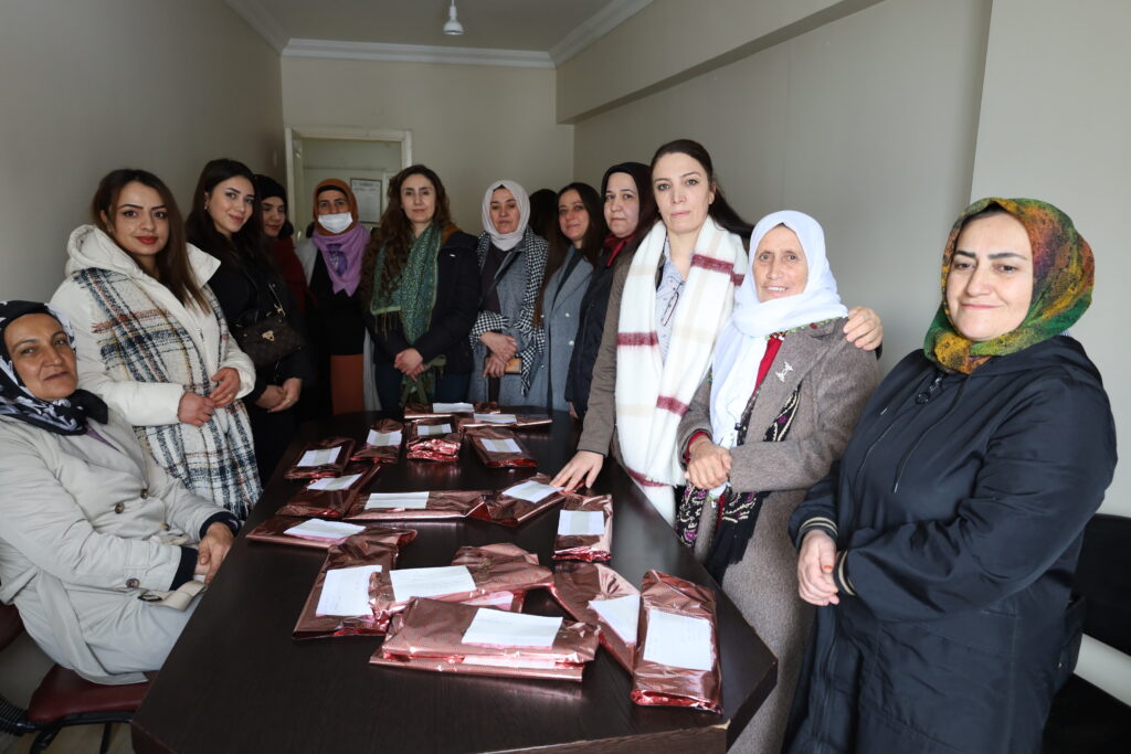 Komeleya Piştevaniya bi Malbatên Girtî û Hikûmxwaran re ya Wanê (TUHAY-DER) li avahiya komeleya xwe xwe, ji bo girtiyên jin, bi boneya 8ê Adarê kefî amade kirin. Jinan kefiyên ku amade kiribûn di çerçoveya bernameyên 8ê Adarê de, bi rêya posteyê ji jinên di girtigehên Kocaelî û Wanê de tên ragirtin re şandin.