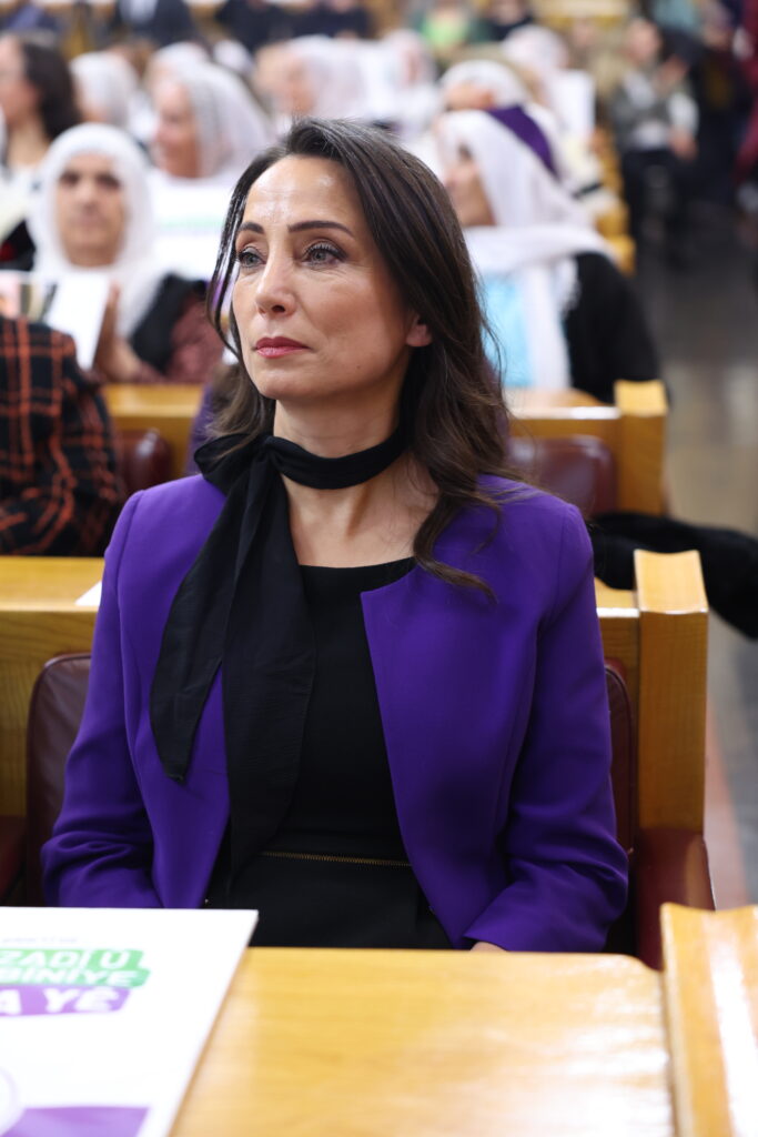 Tulay Hatîmogullari bal kişand şerê li Rojhilata Navîn û got: “Herî zêde jin ji şer bandor dibin. Ji bo vê yekê em aştiyê dixwazin. Em li vir bang dikin; Em ê aştiya vî welatî ava bikin. Jin dê jiyanê û pêşeroja demokratik ava bikin. Em careke din dibêjin; Em ê jiyaneke bê tundî ava bikin û xwedî li aştiyê derbikevin.”