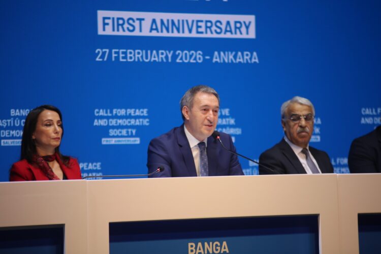 Partiya Wekhevî û Demokrasiyê ya Gelan (DEM Partî) têkildarî salvegera yekemîn a banga Aştî û Civaka Demokratîk a 27ê Sibatê ji aliyê Rêberê Gelê Kurd Abdullah Ocalan ve hatibû kirin, li Dika Yilmaz Guney a navçeya Çankaya ya Enqereyê bernameyek li dar xist. Zêdetirî 150 saziyên çapemeniyê û rojnameger bernameyê dişopînin.