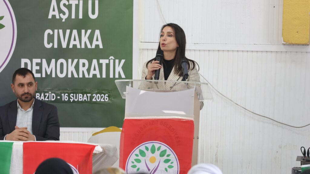 Rêxistina DEM Partiyê ya Agiriyê di çarçoveya pêvajoya “Aştî û Civaka Demokratîk” de li navçeya Bazîdê civîna gel li dar xist. Hevseroka Giştî ya DEM Partiyê Tulay Hatîmogûllari û bi sedan welatî tev li civîna ku li navçeya Bazîdê hat lidarxistin, bûn. Di civînê de dirûşmeyên “Bijî Serok Apo” û “Bi can û xwîn em bi te re ne Serok” hatin berzkirin. Tulay Hatîmogûllari derbarê geşedanên dawî axaftinek kir û bal kişand ser pêvajoya “Aştî û Civaka Demokratîk”.