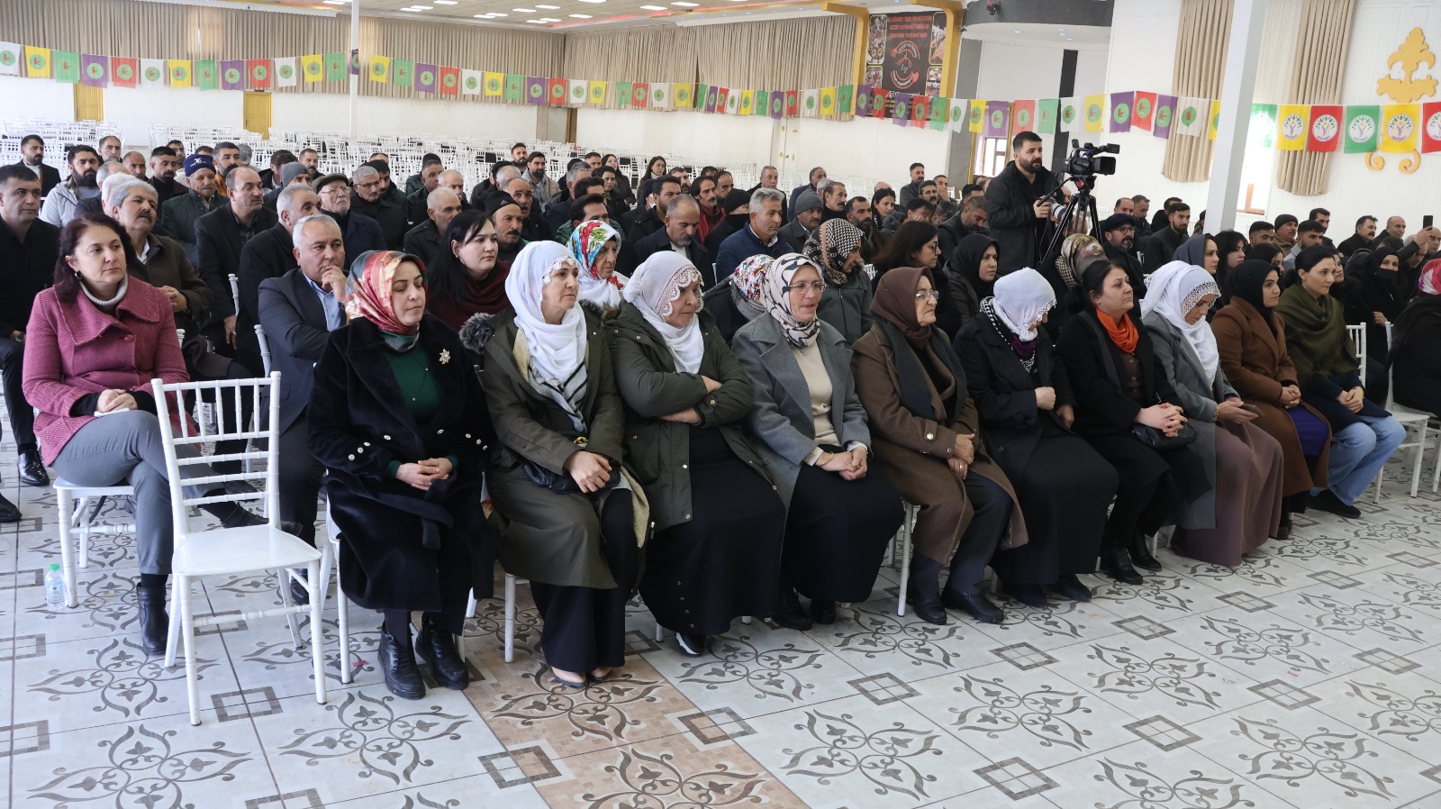 Tulay Hatîmogûllari wiha dawî li axaftina xwe anî: “Ji bo serkeftina pêvajoyê divê em ne tenê bi gotinan, lê bi kiryaran jî rûyê xwe ber bi Îmraliyê ve bizivirînin. Aştî li ser tepsiyeke zîvîn ji me re nayê pêşkêş kirin. Aştî ne tenê bi civînên li Enqerê an jî civînên li Îranê ve sînordar e. Ger em dixwazin bihêz bin, rêya serkeftina diyalogê li ser maseyê, têkoşîneke bihêz li meydanan e. Ger em têkoşîneke bihêz bidin, ger em bi rêxistineke bihêz derkevin holê, bizanin ku em ê destê Birêz Ocalan jî xurt bikin. Em dikarin bi vî rengî destê DEM Partiyê di danûstandinên li ser maseyê de xurt bikin. Zêdetirî 100 sal in mafên gelê Kurd ji destê wan hatiye girtin. Divê sedsala nû ji bo gelê Kurd bibe sala çareseriyê. Divê em yekgirtî bin, divê em bi hev re bin.”Piştî axaftinê, civîn ji çapemeniyê re girtî berdewam kir.