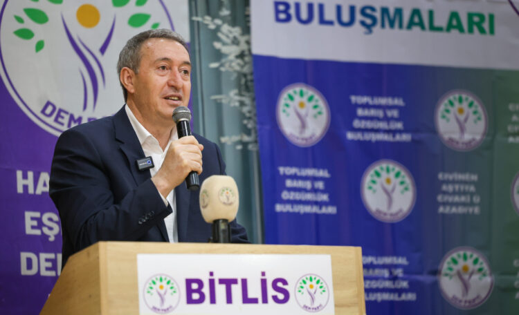Hevserokê Giştî yê DEM Partiyê Tuncer Bakirhan li Bedlîsê di civîna gel de axivî û bal kişand ser rapora komîsyonê û got: “Kurd li benda gavavêtinê ne, werin em bi girtîgehan û qeyiman dest bi gavavêtinê bikin.”