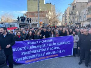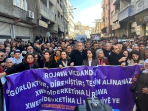 Girseyê axaftina Tulay Hatimogullari qut kir û dirûşmeya “Bijî Berxwedana Rojava” berz kir.