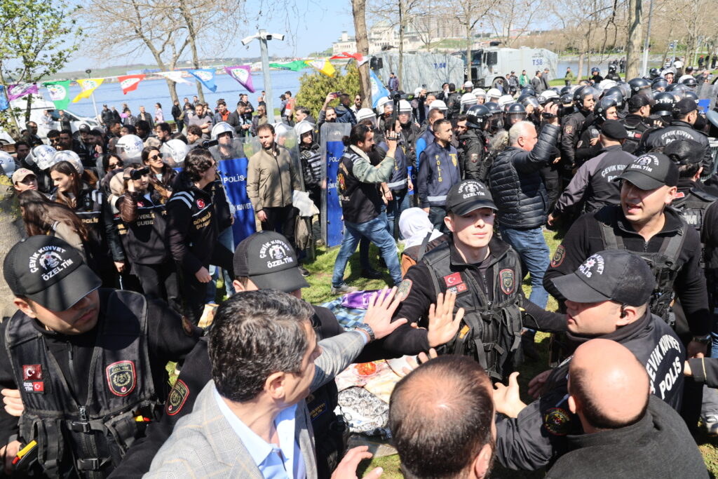 Di dema foruma ku Azîme Işik, Veysî Aktaş û Sabahat Tuncel tê de amade bûn, polîsan bi hinceta wêneyên Rêberê Gelê Kurd Abdullah Ocalan hatine vekirin êrişî gel kir û 3 kes binçav kirin. Gel bi diruşmeyên “Bijî Serok Apo” bersiv da êrişan û polîs neçar man vekişin.