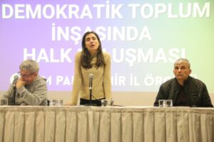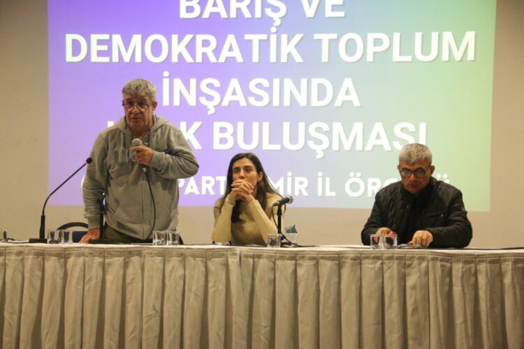 Rêxistina Partiya Wekhevî û Demokrasiyê ya Gelan (DEM Parti) a Îzmirê, li Navenda Kongreyê ya Tepekuleyê bi şîara “Di pevajoya avakirina aştî û civaka demokratîk de civînên bi gel re” bernameyek hate lidarxist. Veysî Aktaş û Hevşaredara Êlihê Gulistan Sonuk a ku qeyûm danîne ser cihê wê, wekî axivêr tevlî civînê bûn. Civîn bi deqeyek rêzgirtinê ya ji bo bîranîna kesên di têkoşîna azadiyê de canê xwe ji dest dane dest pê kir.
