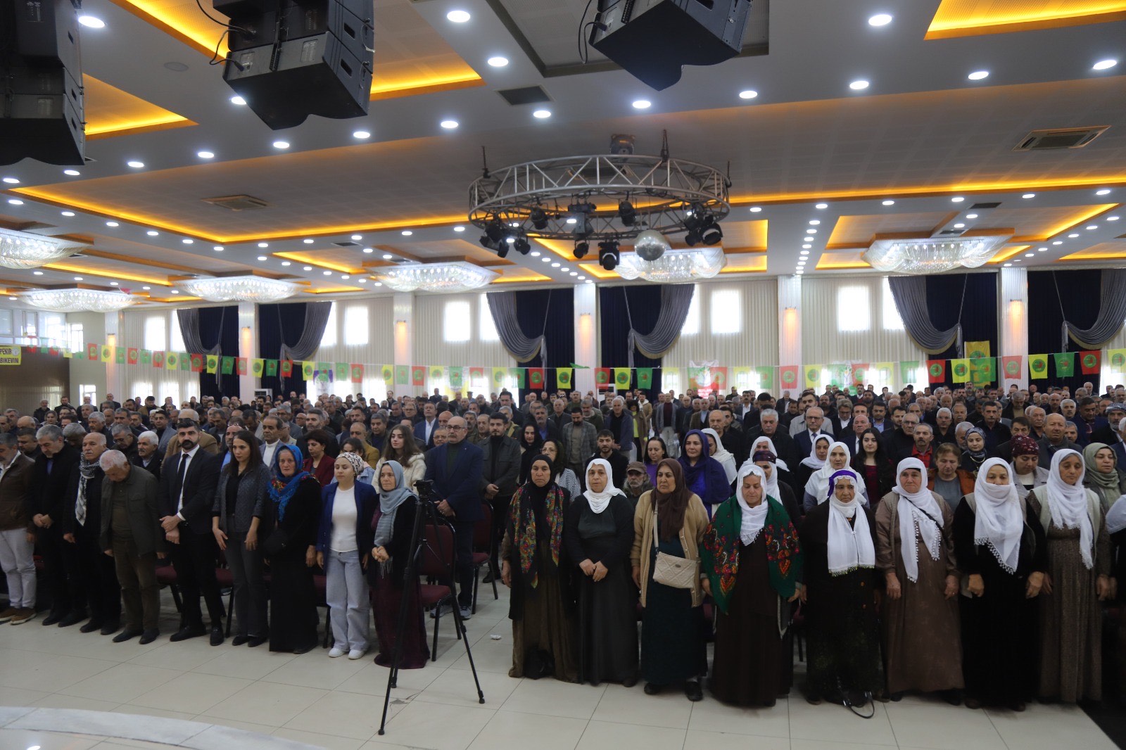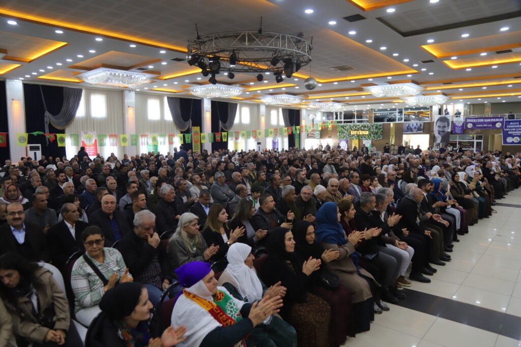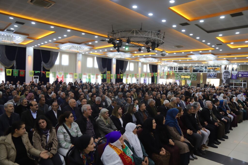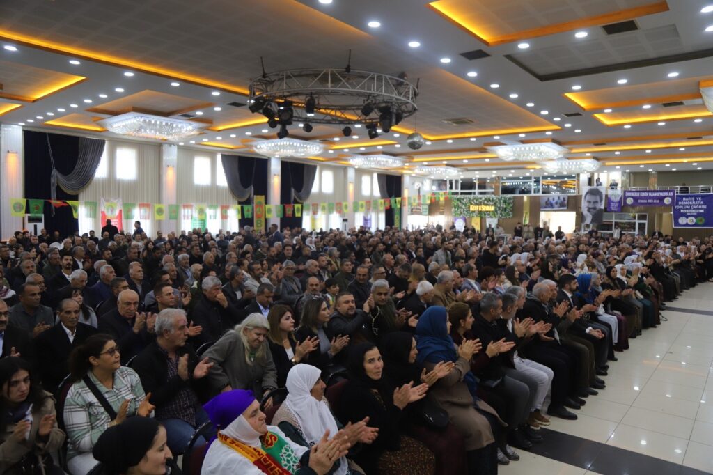 Li navçeya Qoserê ya Mêrdînê bi tevilbûna Veysî Aktaş ê ku 10 salan bi Rêberê Gelê Kurd Abdûllah Ocalan re li Girtîgeha Îmraliyê mayî, Parêzerê Abdûllah Ocalan Mazlûm Dînç, Hevşaredara Êlihê Gulistan Sonuk û hezaran welatiyan Civîna Aştî û Civaka Demokratîk hat lidarxistin. Wêneyên Abdûllah Ocalan di salona taybet a civîn pêk hatî de hatin daliqandin. Civînê bi rêzgirtina ji bo cangoriyên azadiyê destpê kir. Piştî rêzgirtinê Hevşaredara Êlihê Gulistan SonukÊ derbarê armanca civînê de agahî dan.
