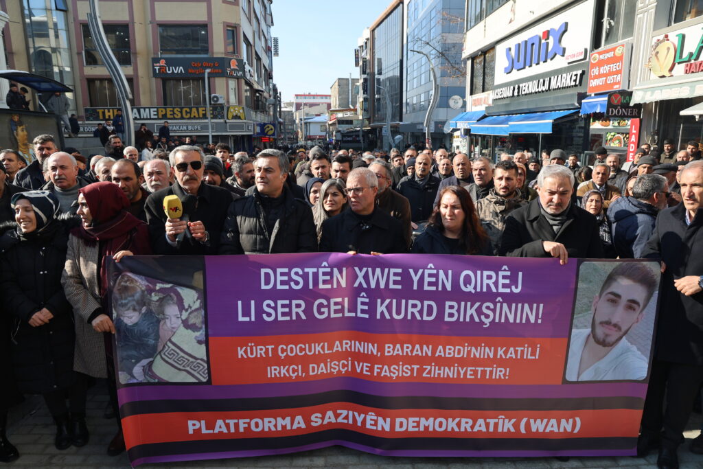 Platfomra Saziyên Demokratîk a Wanê, ji bo ciwanê ji Kobanê Baran Ebdî ku duh li navçeya Tarsusa Mêrsînê ji aliyê kesekî MHPî ve hatibû qetilkirin, meşek li dar xist û daxuyanî da. Girse ji avahiya Partiya Wekhevî û Demokrasiyê ya Gelan (DEM Partî) ya navçeya Artemêtan heta Kolana Hunerê meşiyan û di meşê de “Bijî berxwedana Rojava”, “Yek e yek e yek gelê Kurd yek e” û “Wê Rojava ji DAIŞê re bibe goristan” hatin berzkirin. Hevşaredarên Bajarê Mezin ên Wanê Neslîhan Şedal û Abdullah Zeydan, parlementerên DEM Partiyê yên Wanê Gulderen Varli û Zulkuf Ûçar, hevserokên DBP û DEM Partiyê yên Wanê, nûnerên saziyên sivîl û gelek welatî tev li meş û daxuyaniyê bûn.