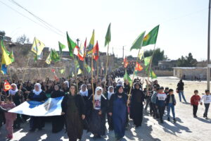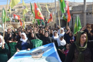 Li Wargeha Penaberan a Şehîd Rûstem Cûdî (Mexmûr) bi hezaran kes li pêş Saziya Malbatên Şehîdan kom bûn û dest bi meşê kirin. Gel di meşê de bênavber dirûşmeya, “Kes Nikare Roja Me Tarî Bike”, “Bê Serok Jiyan Nabe”, “Bijî Serok Abdullah Ocalan” berz kir. Gelê wargehê bi alên KCKê, wêneyên Rêberê Gelê Kurd Abdullah Ocalan meşa xwe heta ber avahiya Neteweyên Yekbûyî domand.