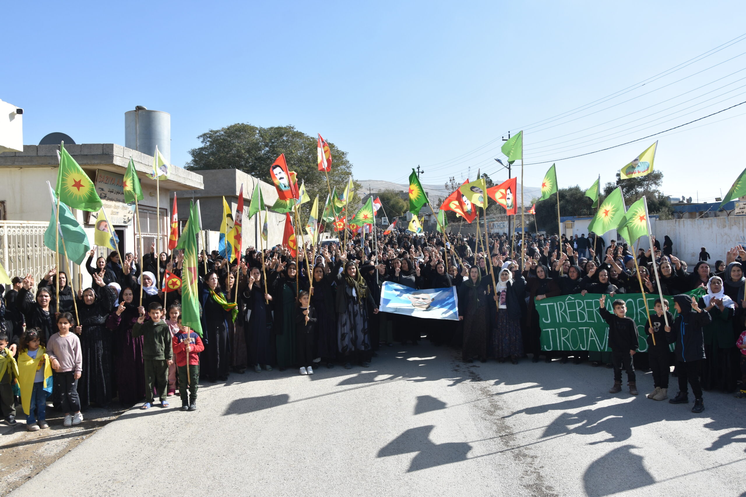 Li Wargeha Penaberan a Şehîd Rûstem Cûdî (Mexmûr) bi hezaran kes li pêş Saziya Malbatên Şehîdan kom bûn û dest bi meşê kirin. Gel di meşê de bênavber dirûşmeya, “Kes Nikare Roja Me Tarî Bike”, “Bê Serok Jiyan Nabe”, “Bijî Serok Abdullah Ocalan” berz kir. Gelê wargehê bi alên KCKê, wêneyên Rêberê Gelê Kurd Abdullah Ocalan meşa xwe heta ber avahiya Neteweyên Yekbûyî domand.