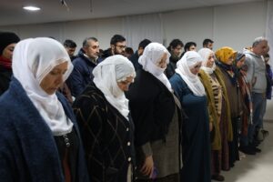 Beriya civînê ji bo cangoriyên têkoşîna azadiyê rêz hate girtin. Piştî rêzgirtinê dirûşmeyên “Bijî Serok Apo”, “Şehîd namirin” hatin berzkirin.