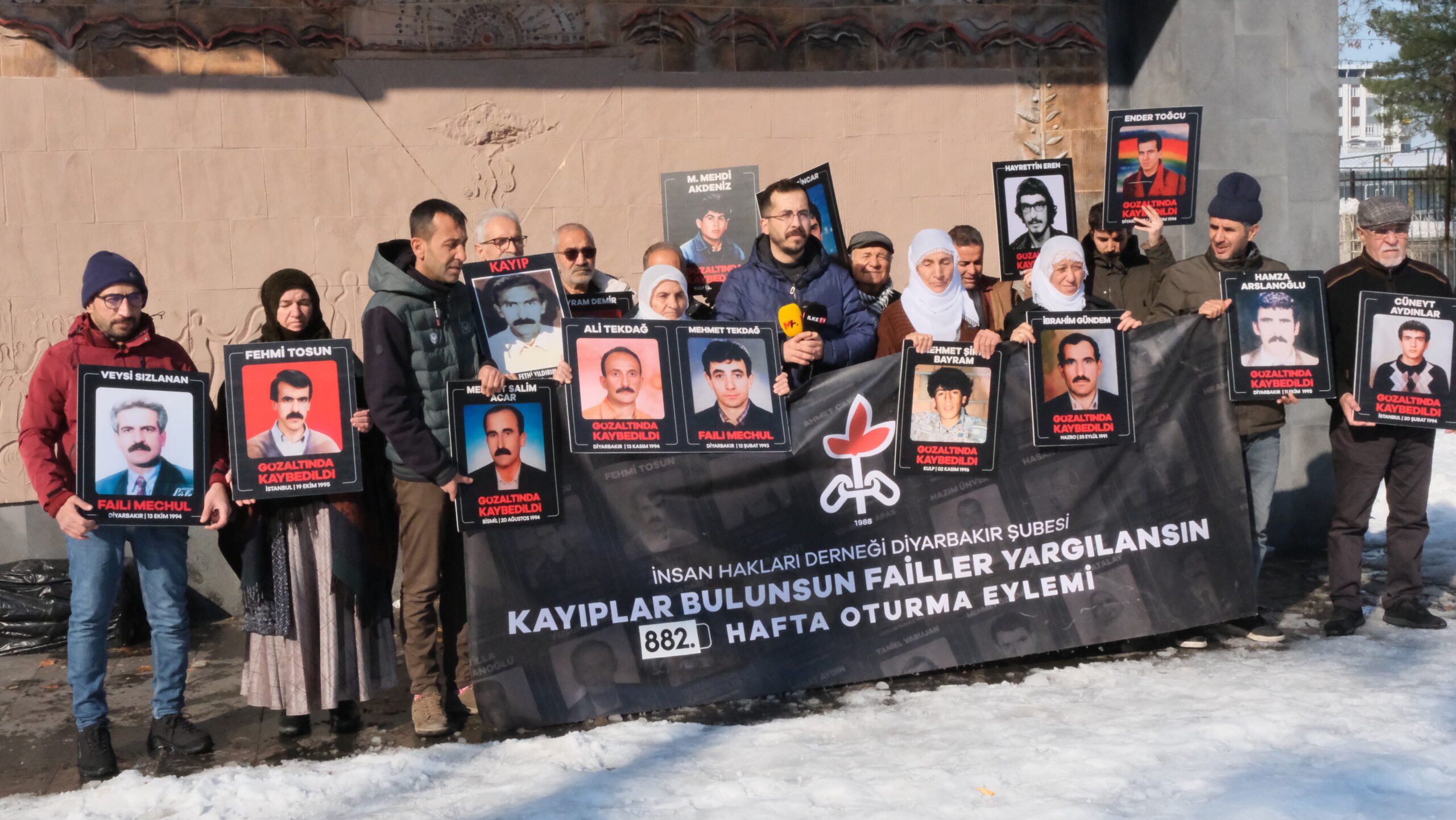 Xizmên Windayan û Şaxa Komeleya Mafê Mirovan (ÎHD) a Amedê tevî berf, qeşa û sirûseqemê jî di hefteya 882yemîn de çalakiya “Bila winda bên dîtin û faîl bên darizandin” li ber Bîrdariya Mafên Mirovan a Parka Koşuyoluyê li dar xist. Rêveberên ÎHDê, Xizmên Windayan, nûnerên rêxistinên sivîl tev li çalakiyê bûn û wêneyên windayan hildan.