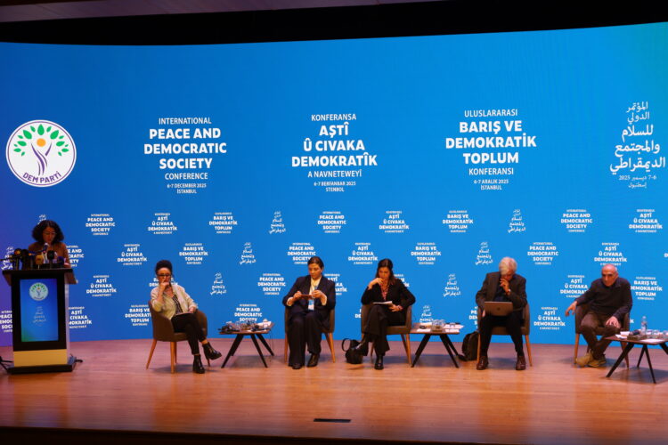 Konferansa Navneteweyî ya Aştî û Civaka Demokratîk a DEM Partiyê li Navenda Çandê ya Cem Karaca ya Stenbolê di roja duyemîn de berdewam dike. Di konferansê de Hevserokên HDPê yên berê Fîgen Yuksekdag û Selahattîn Demîrtaş peyam ji konferansê re şandin. Cîgira Hevserokên Giştî yên DEM Partiyê Ebrû Gunay peyamên Fîgen û Selahattîn xwend. Peyamên Fîgen û Selahattîn wina ne: