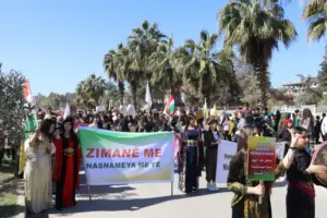Li Başûr, Bakur, Rojhilat û Rojavayê Kurdistanê bi boneya 21ê Sibatê Roja Zimanê Zikmakî ya Cîhanê li dehan navendan meş û daxuyanî hatin lidarxistin. Pîr, kal, jin, zarok û ciwan bi kincên xwe yên neteweyî tev li meşan bûn û banga mezinkirin û xwedî lê derketine ziman hate kirin. Di meşan de pankart û dowîzên balê dikişîne ser girîngiya ziman û sloganên banga perwerdehiya Kurdî dikin hatin berzkirin. Li Qamişlo, Hesekê, Tirbespiyê, Dirbêsiyê, Til Temir, Amûdê û Girkê Legê meş hatin lidarxistin.